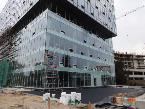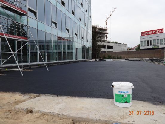 Na ścianach kondygnacji podziemnych wykonano hydroizolację z masy KOSTER KMB Bikuthan 2K. Na stropodachu nad podziemnymi kondygnacjami została wykonana hydroizolacja bitumiczna z masy KMB KOSTER Deuxan 2K z siatką Armierungsgewebe. Podłoże było wczesniej oczyszczone i zagruntowane emulsją bitumiczną KOSTER Bitumenemulsioną. Fasety wykonano z zaprawy KOSTER Sperrmortel, a do wykonania warstwy ochronno-drenażowej wykorzystano Folię SD 3-250. Łączna powierzchnia hydroizolacji ok. 1300 m2.