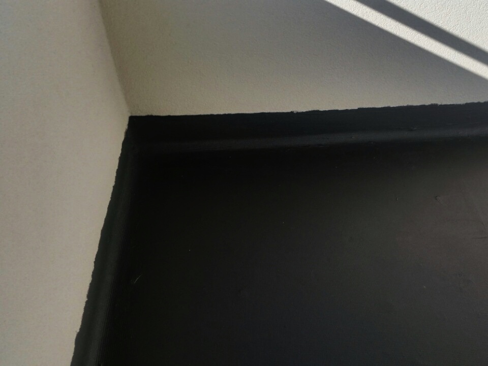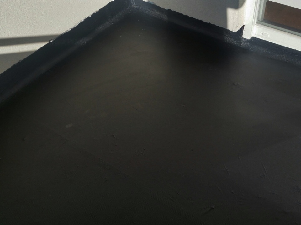 Hidroizolacija terase iznad negrijanog prostora izvedena je na slijedeći način: na AB ploču ugrađen je bitumenski temeljni premaz KÖSTER Bitumenski Primer (200 g/m2), zatim 2K elastični bitumen-kaučuk premaz KÖSTER Deuxan 2K (4 kg/m2) s time da se između slojeva premaza ugradila alkalno otporna staklena mrežica KÖSTER Armaturna Mrežica (u svrhu ojačavanja i time veće sposobnosti premoštavanja pukotina). Premaz posjeduje visoku elastičnost (izduženje pri lomu iznosi 100%).