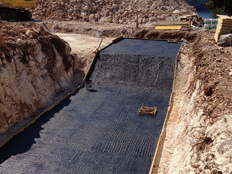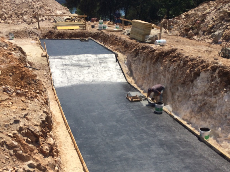 Hrvatska, otok Pag, Gajac, hidroizolacija bazena s vanjske strane