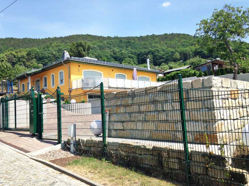 Das in Hanglage errichtete und am Fuße des Windbergs gelegene imposante Wohnhaus wurde mit einer Abdichtung gegen Radongase errichtet.