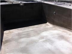Positive and negative side waterproofing with KÖSTER products, KÖSTER Deuxan 2C on the outside, fillets and roundings of all angles of 90 ° with KÖSTER Repair Mortar and coating with KÖSTER Polysil TG 500 and KÖSTER NB1 Grey on the inside. After curing for 2 days application of KÖSTER NB Elastic Grey applied in three layers.