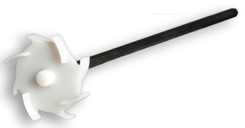 Special mixer for resins. Reduces air enclosures entrainment. Replaceable stirring disc. Round connector shaft 12 mm Ø for chucksmall version: hex head, stirrer diameter: 9 mm, stirrer length: approx. 28 cm, diameter stirring disc: 7.5 cm